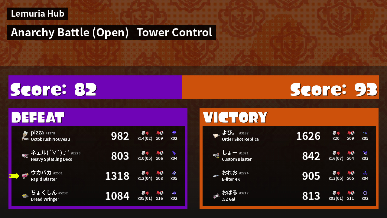 | Mode | Tower Control - Anarchy Battle (Open) | ||