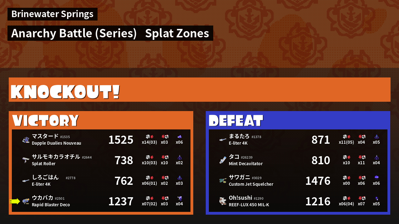 | Mode | Splat Zones - Anarchy Battle (Series) | ||