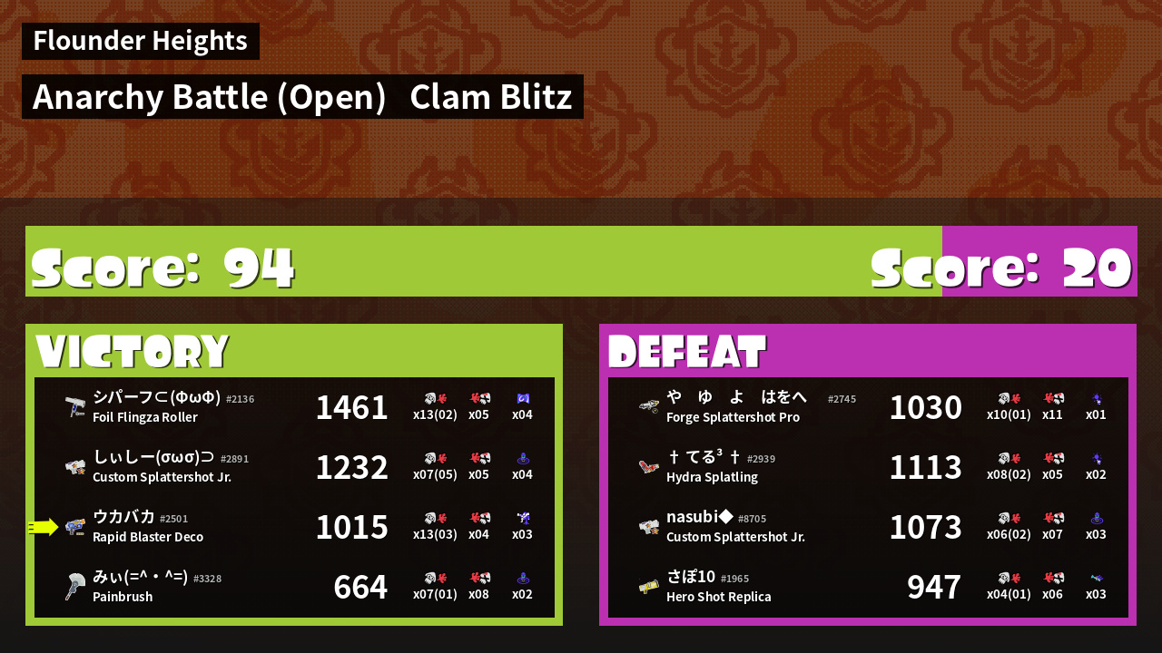 | Mode | Clam Blitz - Anarchy Battle (Open) | ||