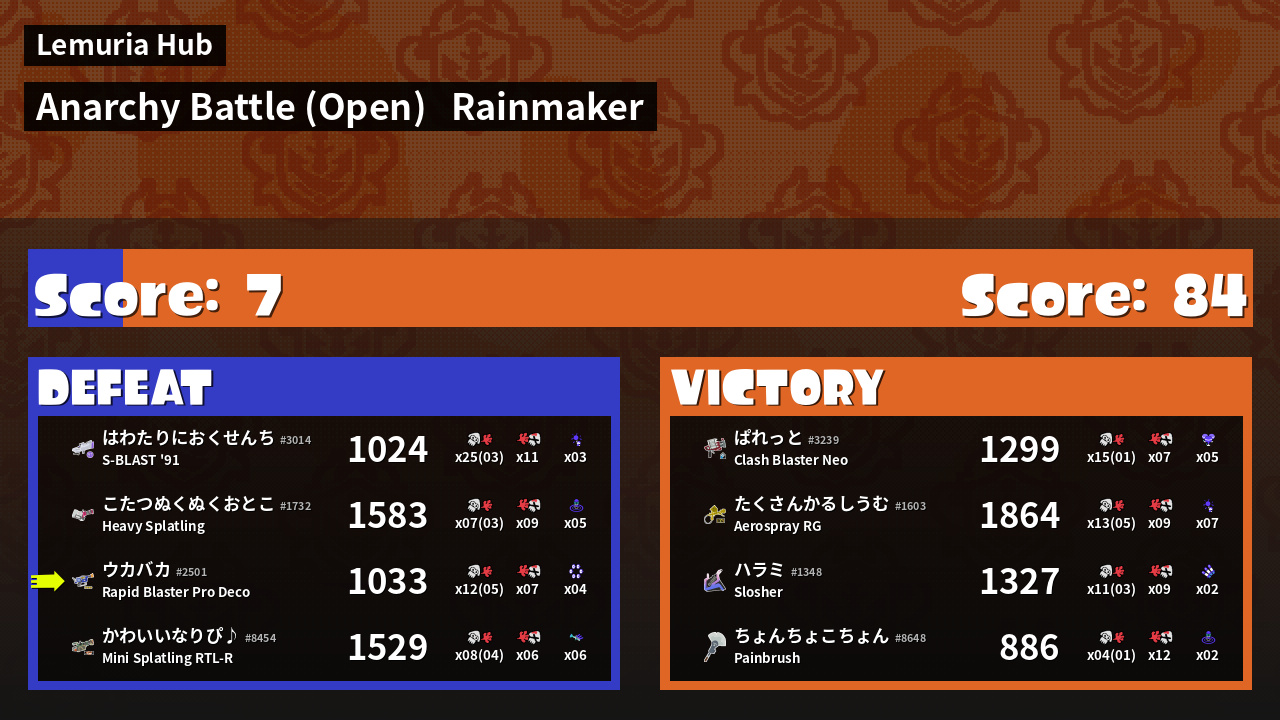 | Mode | Rainmaker - Anarchy Battle (Open) | ||