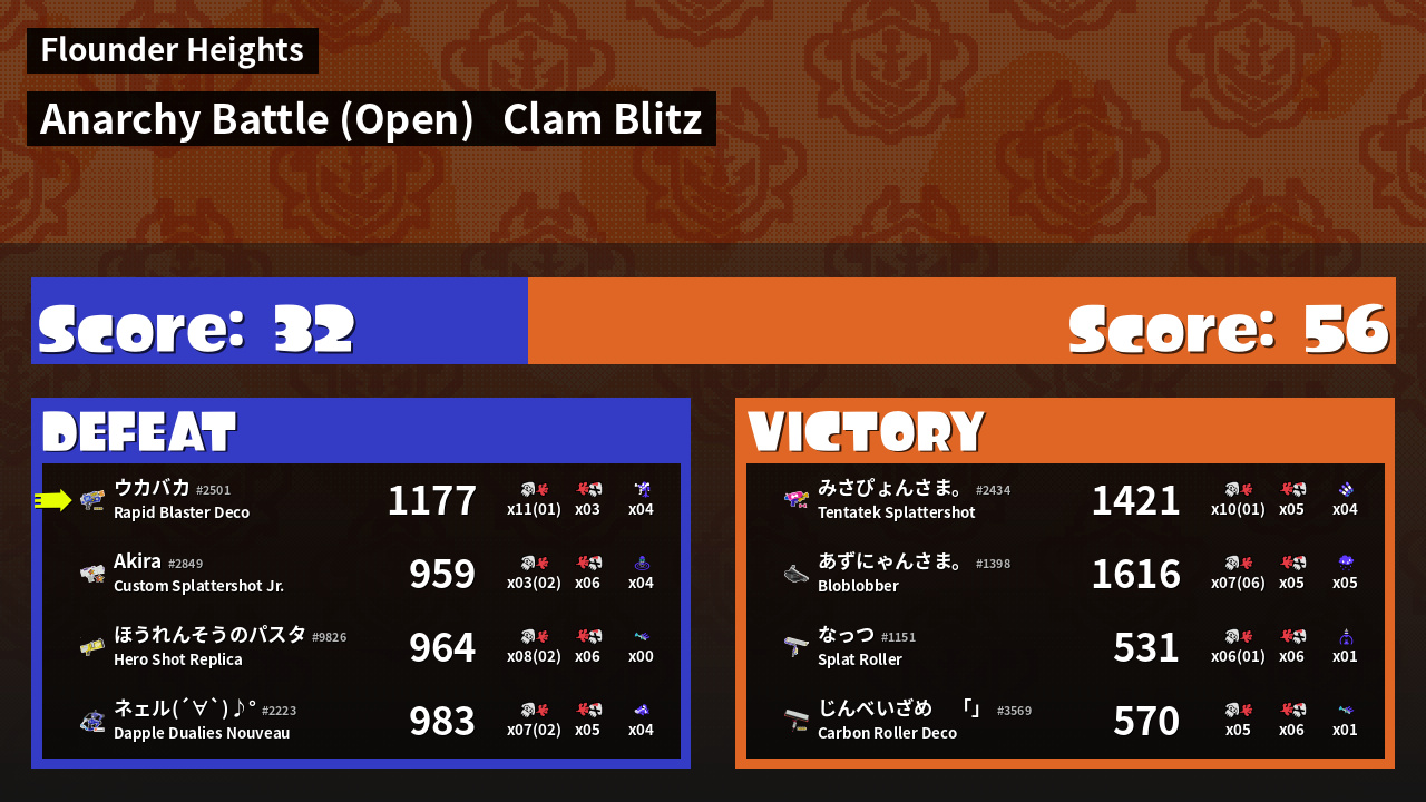 | Mode | Clam Blitz - Anarchy Battle (Open) | ||