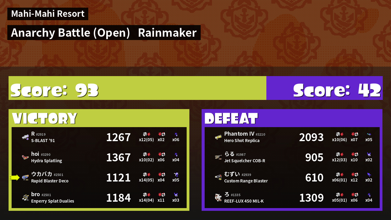 | Mode | Rainmaker - Anarchy Battle (Open) | ||