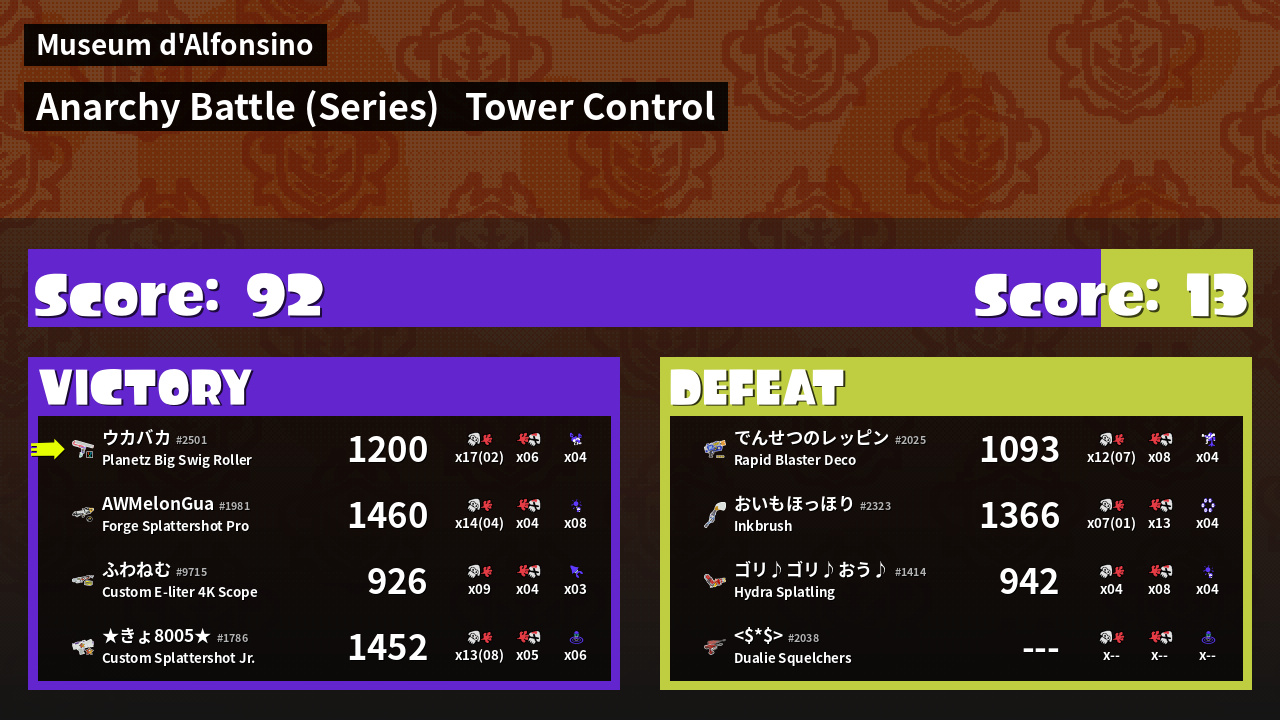 | Mode | Tower Control - Anarchy Battle (Series) | ||