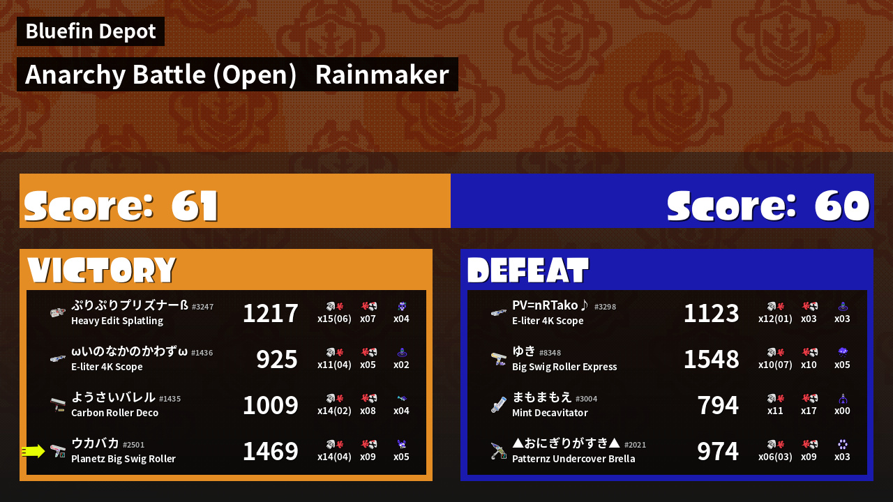 | Mode | Rainmaker - Anarchy Battle (Open) | ||
