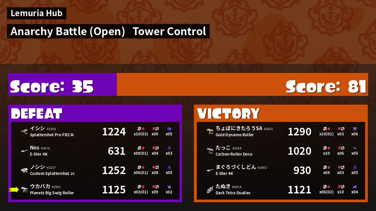 | Mode | Tower Control - Anarchy Battle (Open) | ||