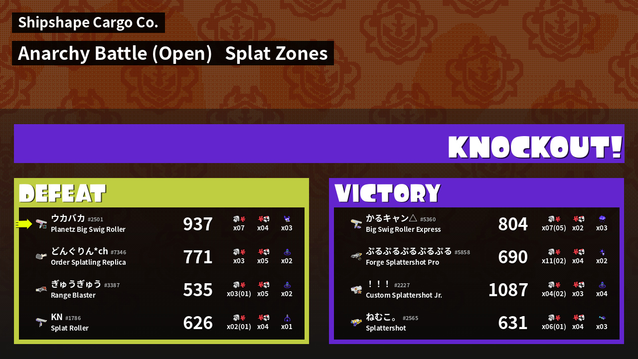| Mode | Splat Zones - Anarchy Battle (Open) | ||
