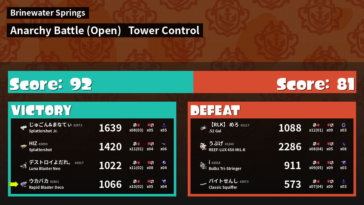 | Mode | Tower Control - Anarchy Battle (Open) | ||