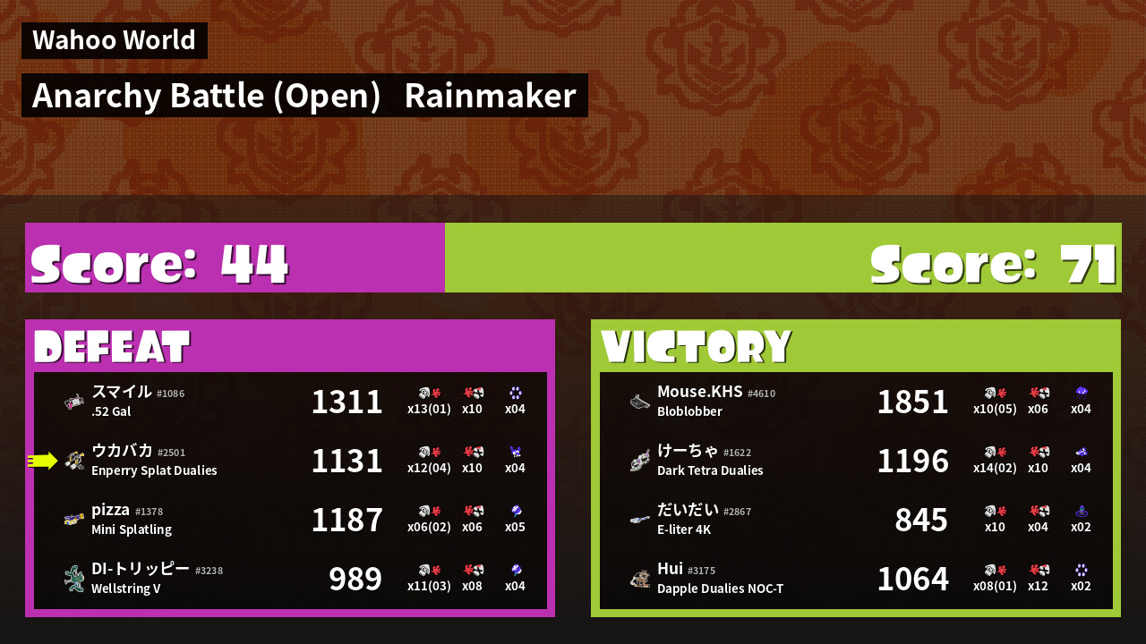 | Mode | Rainmaker - Anarchy Battle (Open) | ||
