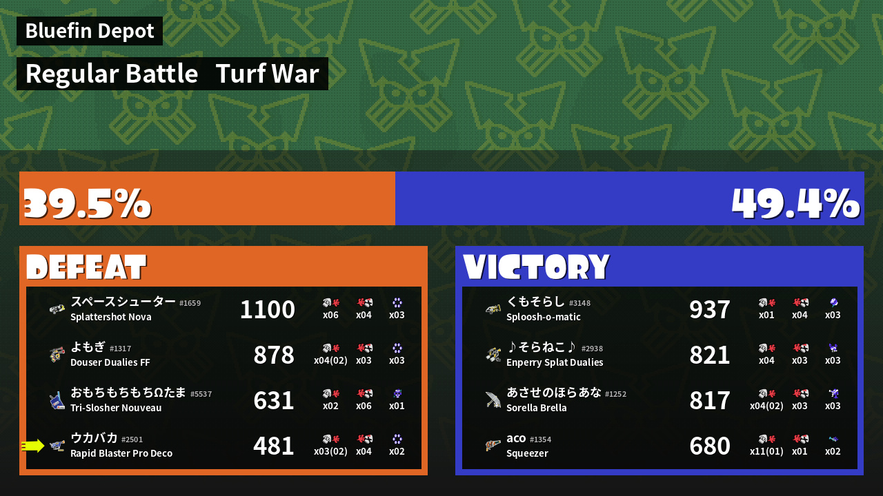| Medals | #1 Splat Assister #1 Base Defender #2 Super Jump Spot | ||