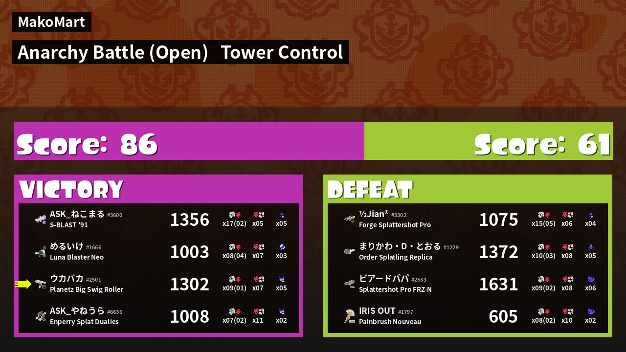 | Mode | Tower Control - Anarchy Battle (Open) | ||