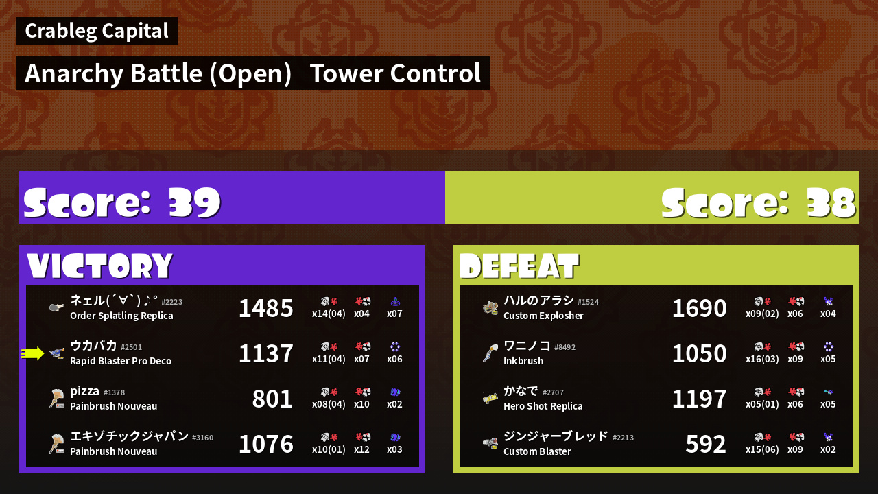 | Mode | Tower Control - Anarchy Battle (Open) | ||