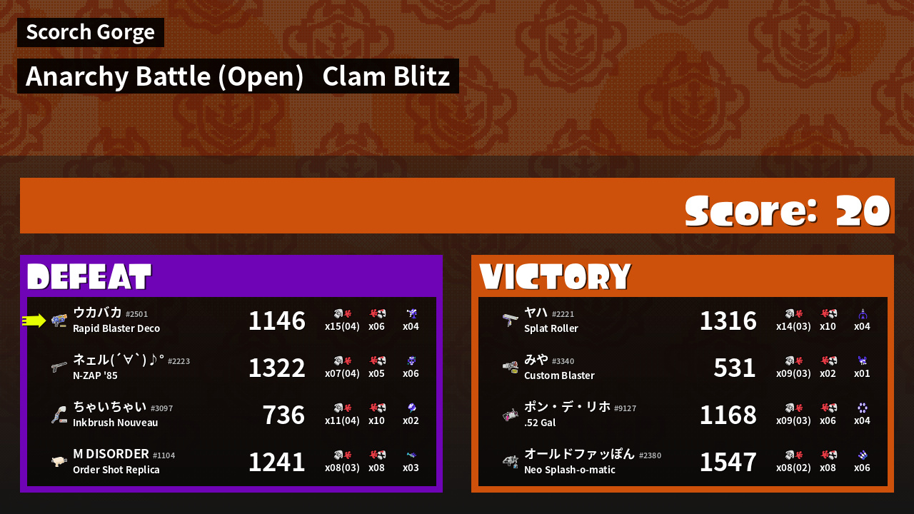 | Mode | Clam Blitz - Anarchy Battle (Open) | ||