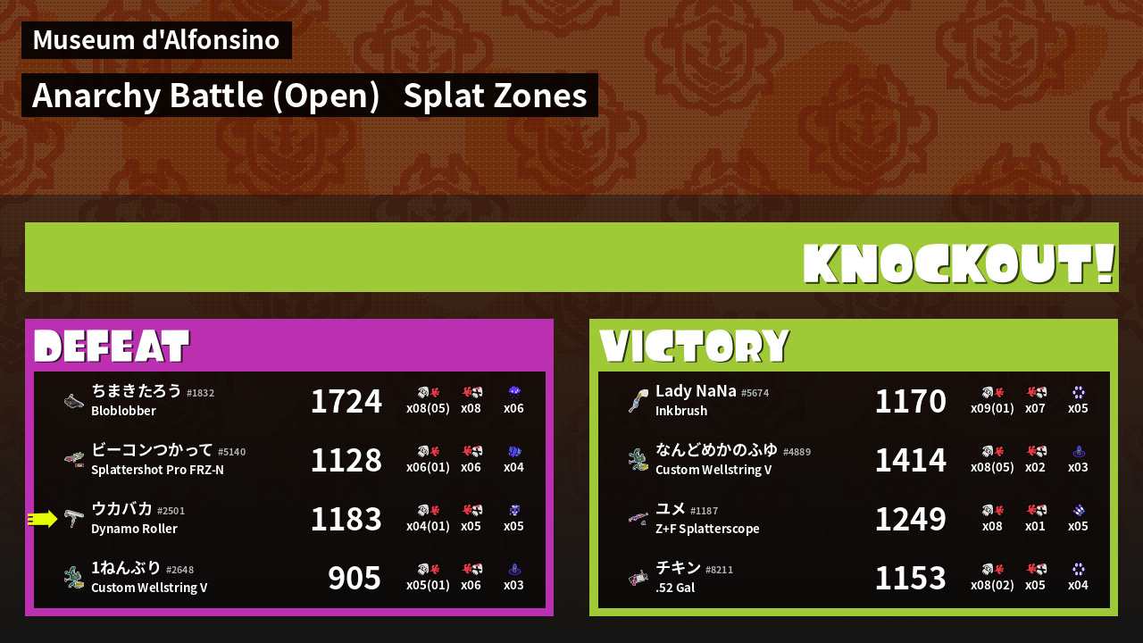 | Mode | Splat Zones - Anarchy Battle (Open) | ||