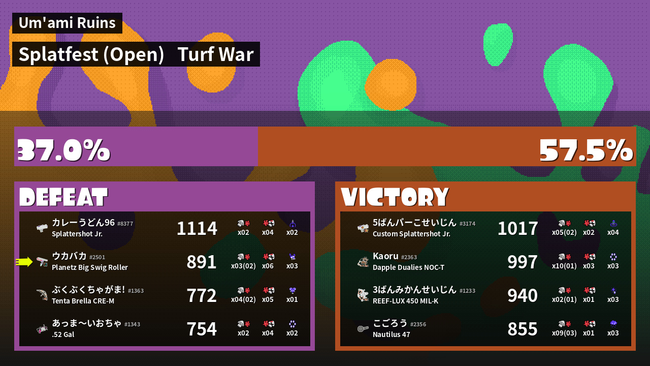 | Medals | #1 Splat Assister First Splat! #2 Overall Splatter | ||