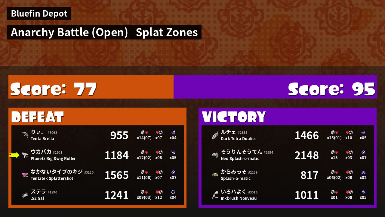| Mode | Splat Zones - Anarchy Battle (Open) | ||