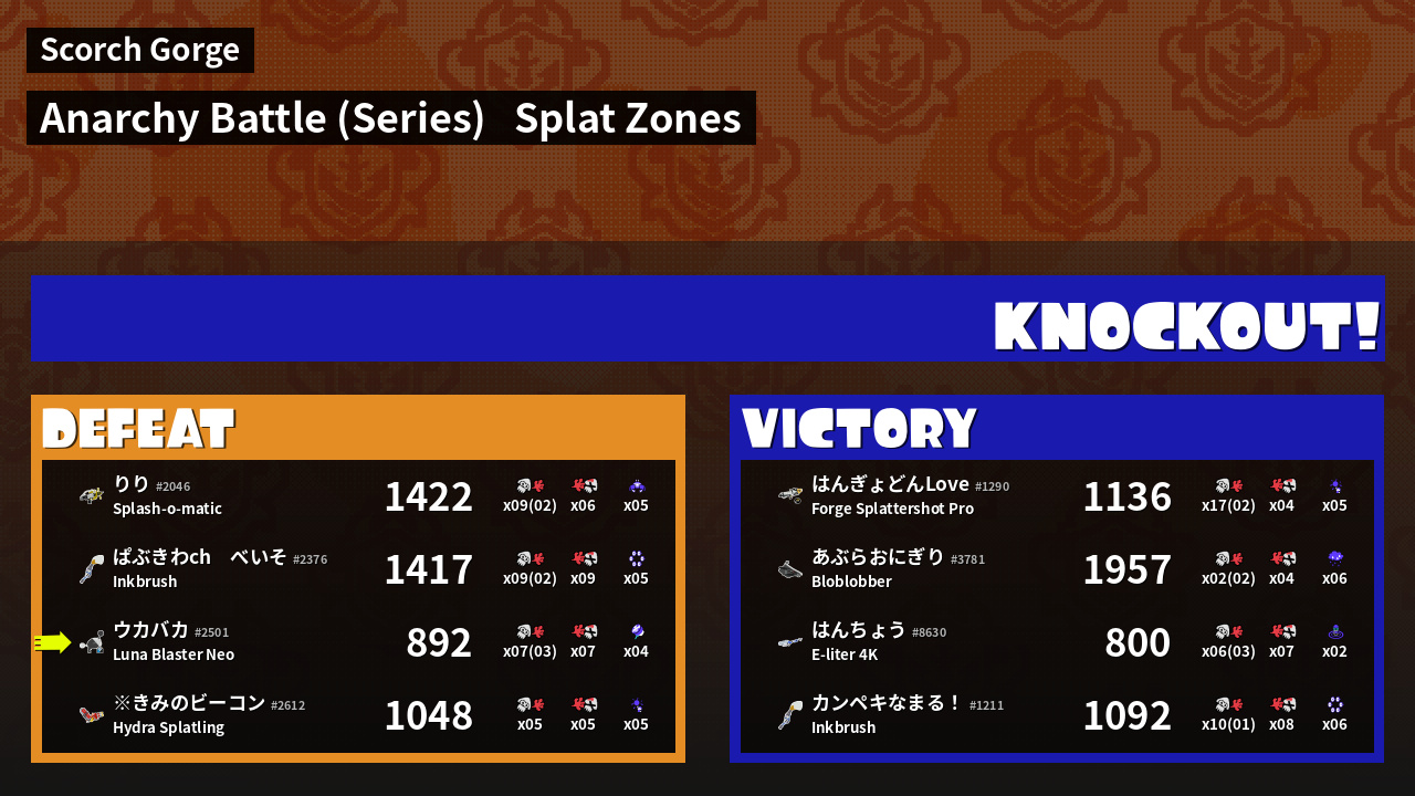| Medals | #1 Splat Zone Guard #1 Splat Assister #1 Damage Taker | ||