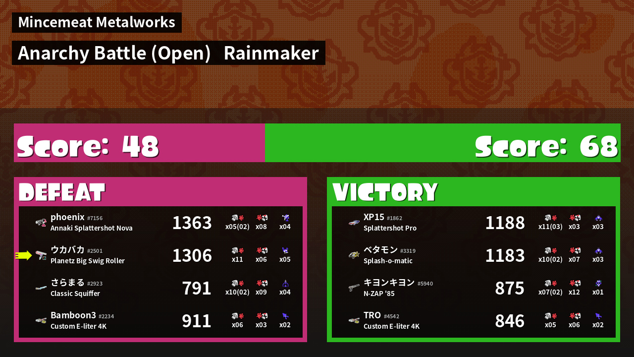 | Mode | Rainmaker - Anarchy Battle (Open) | ||