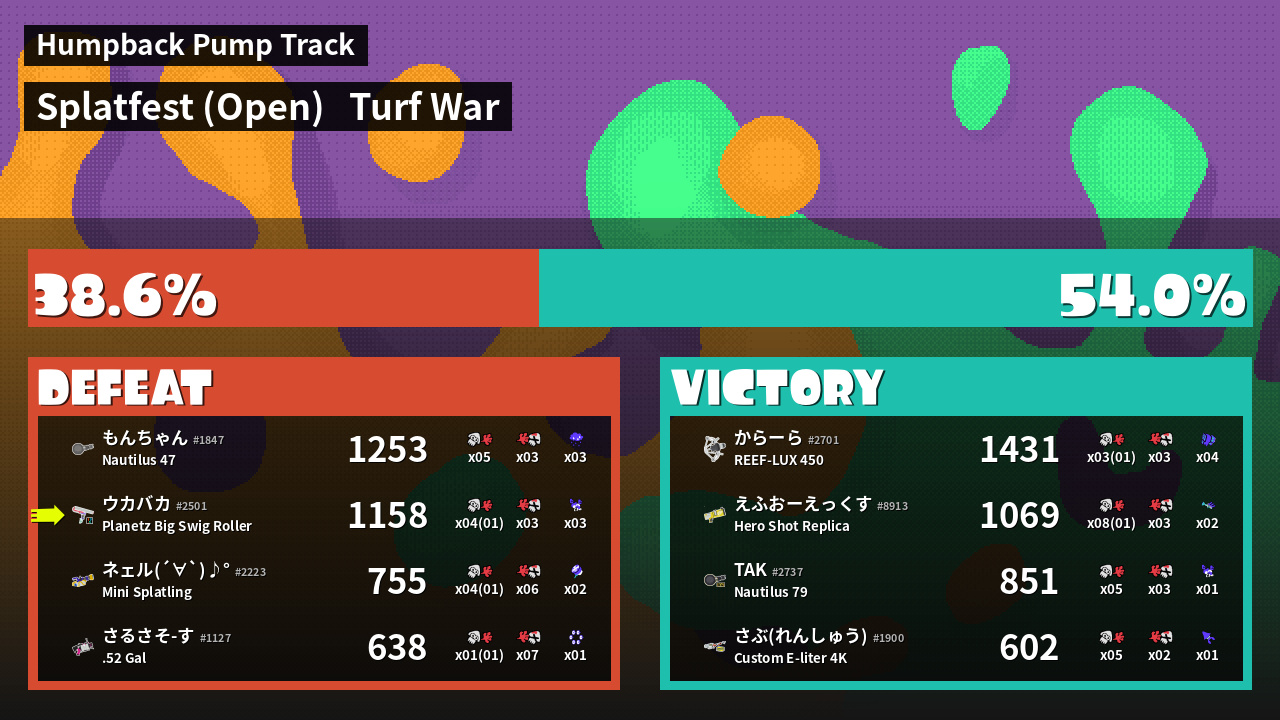 | Medals | #1 Home-Base Inker #1 Splat Assister #1 Damage Taker | ||