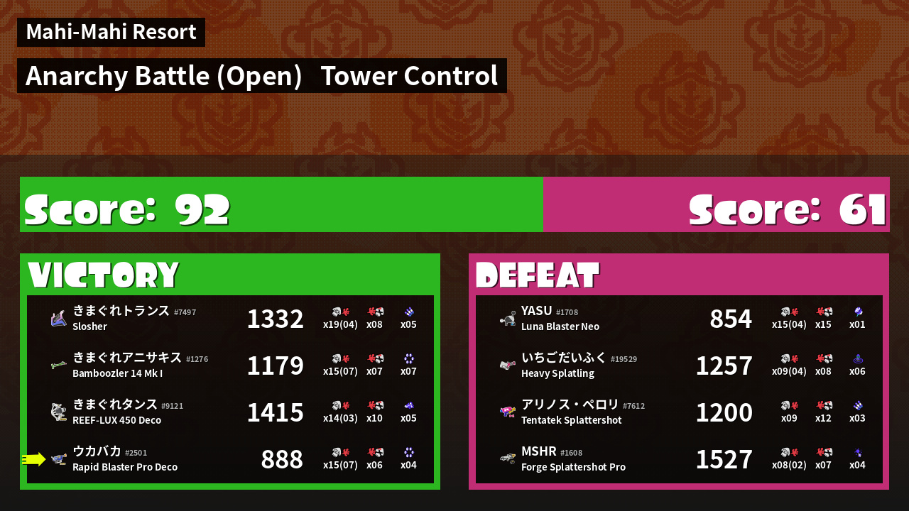 | Mode | Tower Control - Anarchy Battle (Open) | ||