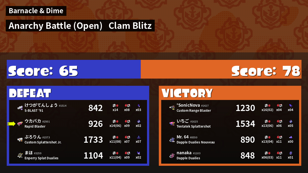 | Mode | Clam Blitz - Anarchy Battle (Open) | ||