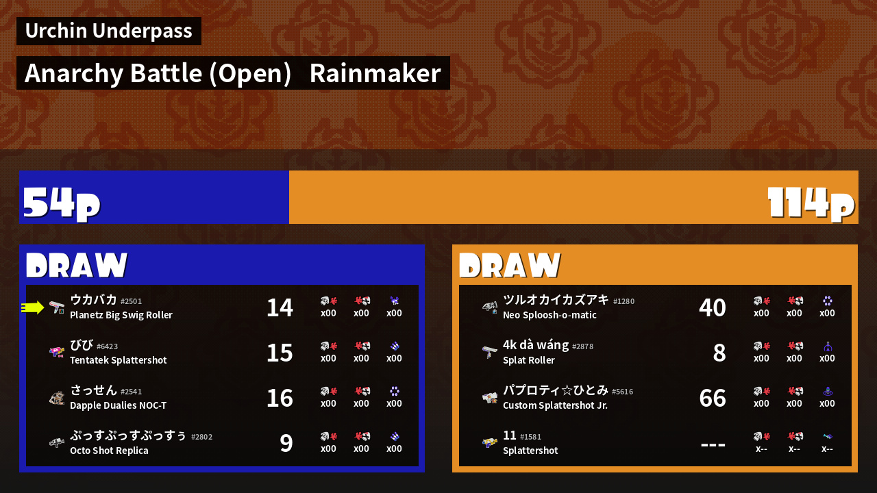 | Mode |    Rainmaker -   Anarchy Battle (Open) | ||