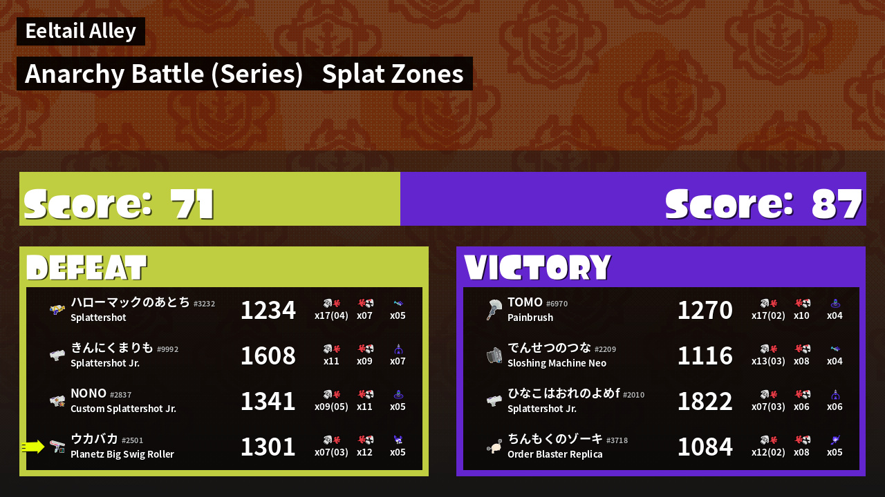 | Mode | Splat Zones - Anarchy Battle (Series) | ||