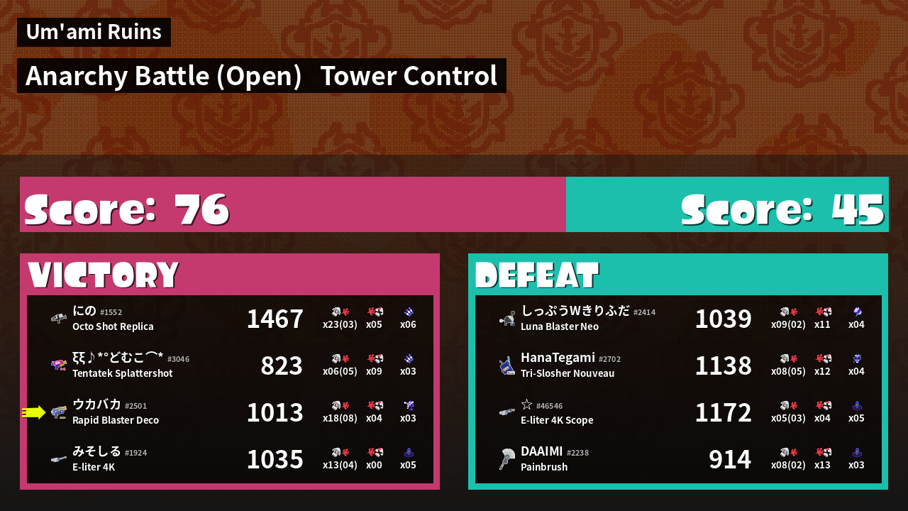 | Mode | Tower Control - Anarchy Battle (Open) | ||
