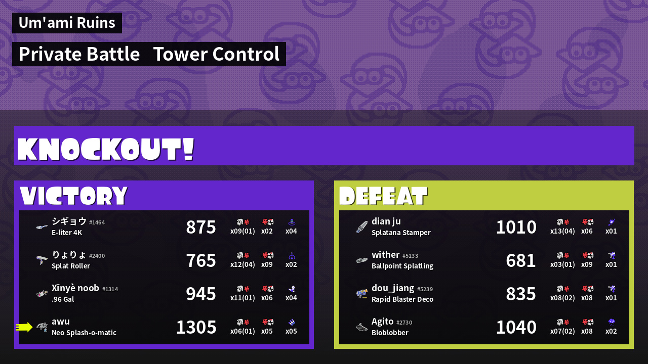 Kills / Deaths | 5 + 1 / 5 = Kill Ratio: 1.00 | ||