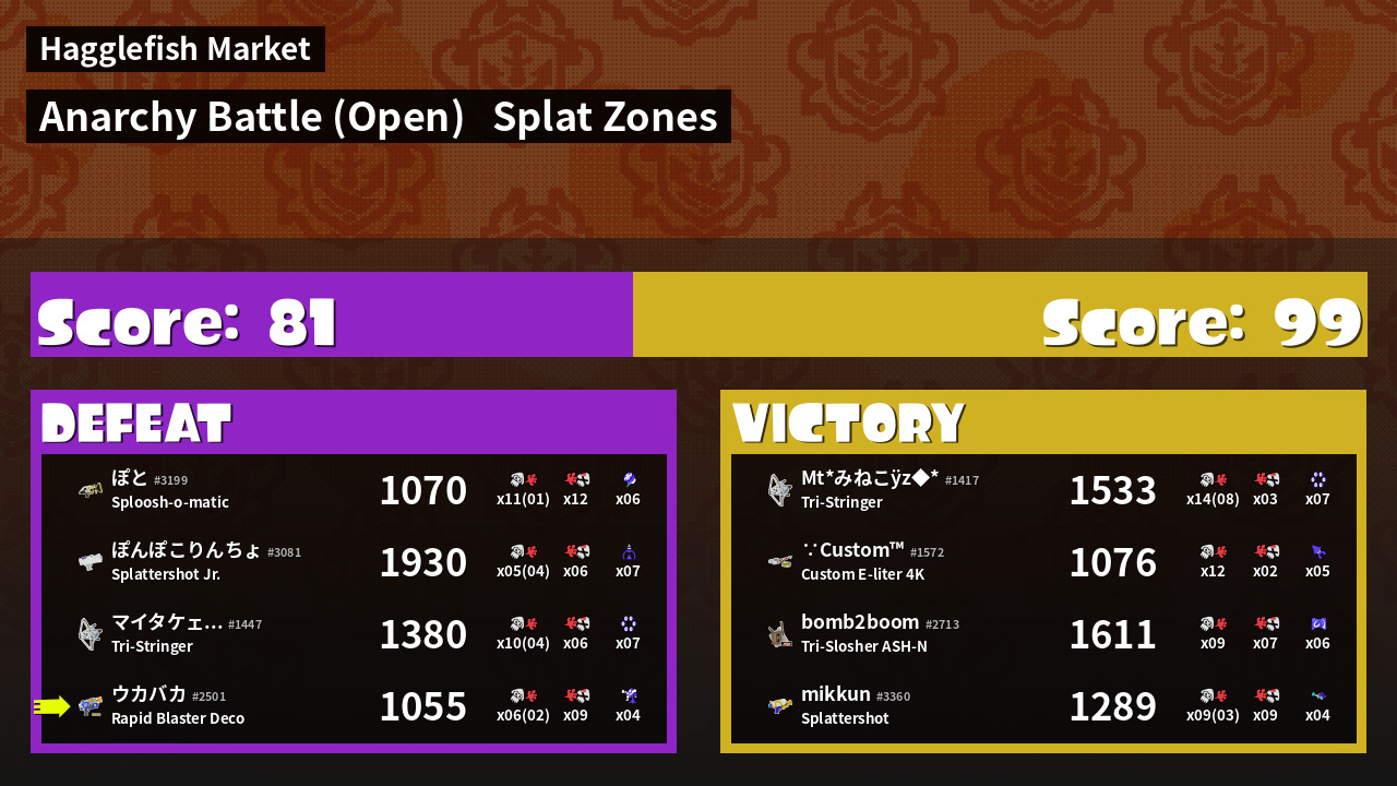| Mode | Splat Zones - Anarchy Battle (Open) | ||