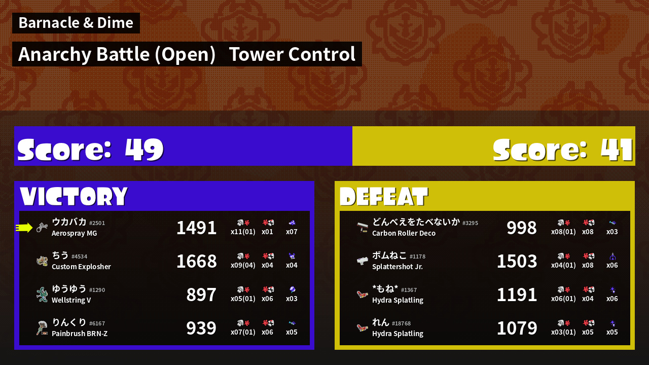 | Mode | Tower Control - Anarchy Battle (Open) | ||