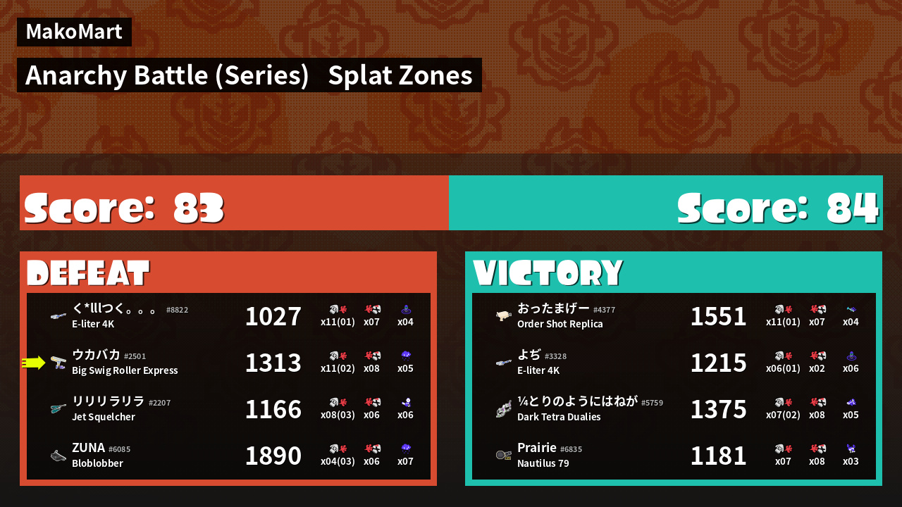 | Mode | Splat Zones - Anarchy Battle (Series) | ||