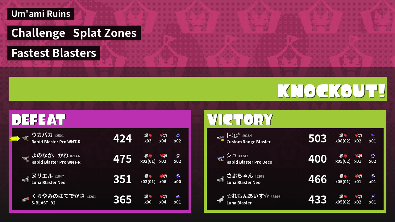 | Medals | #1 Overall Splatter #1 Splat Zone Guard #1 Popular Target | ||