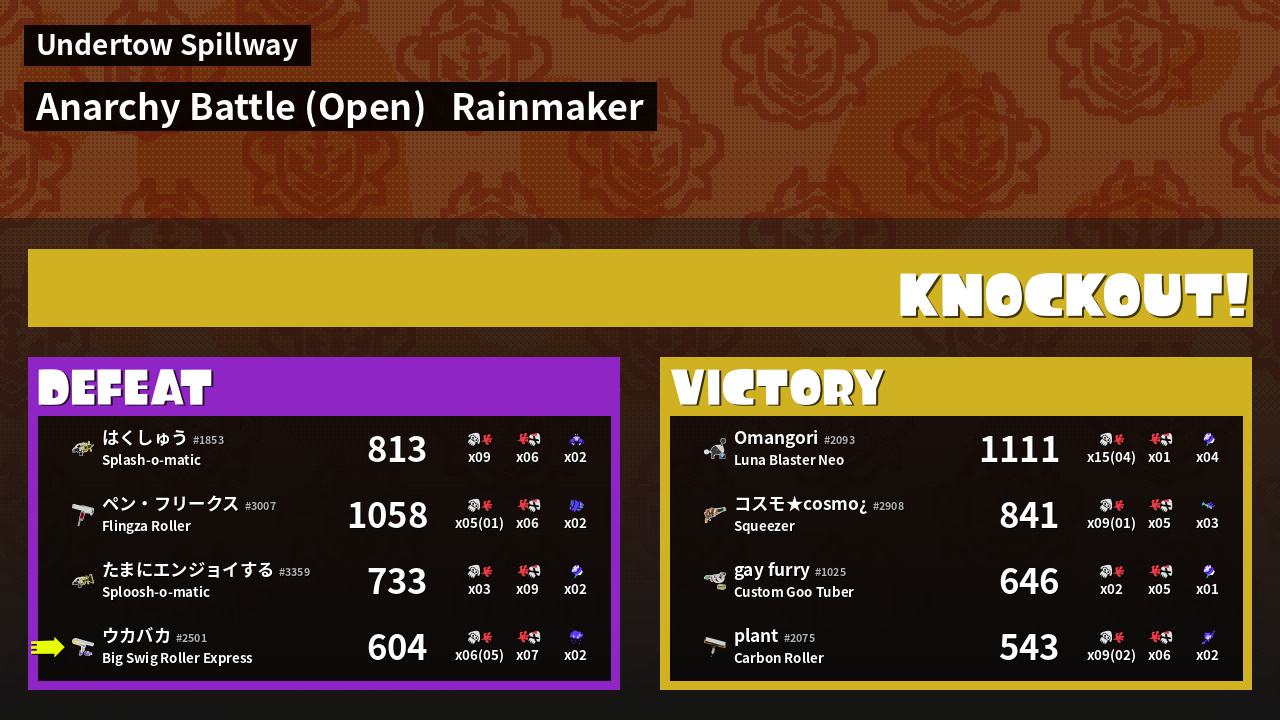 | Medals | #1 Splat Assister #1 Ink Storm User #2 Overall Splatter | ||