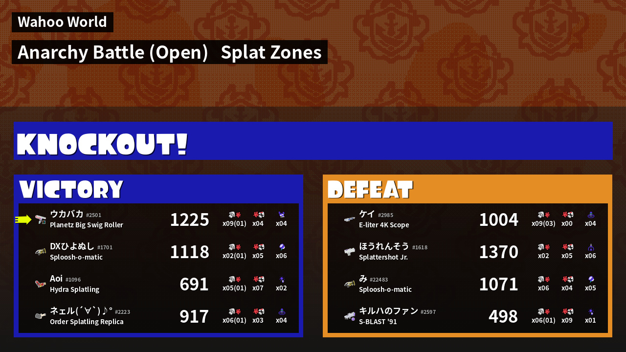 | Mode | Splat Zones - Anarchy Battle (Open) | ||