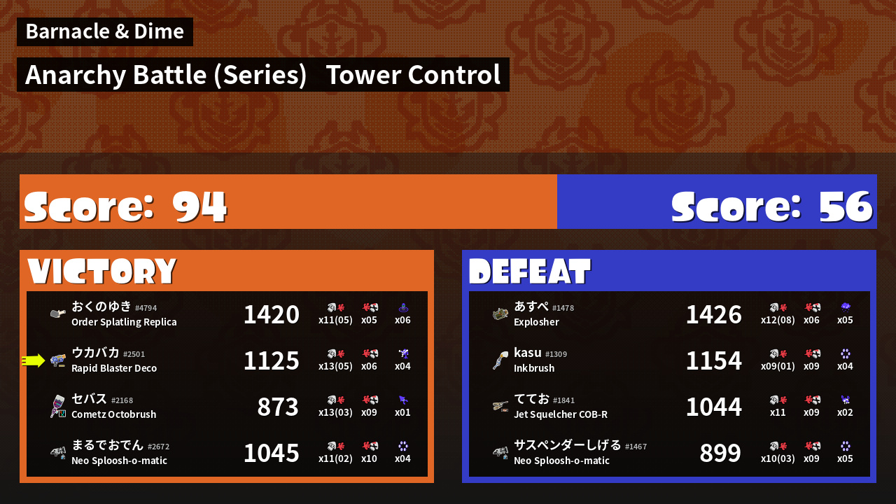 | Mode | Tower Control - Anarchy Battle (Series) | ||