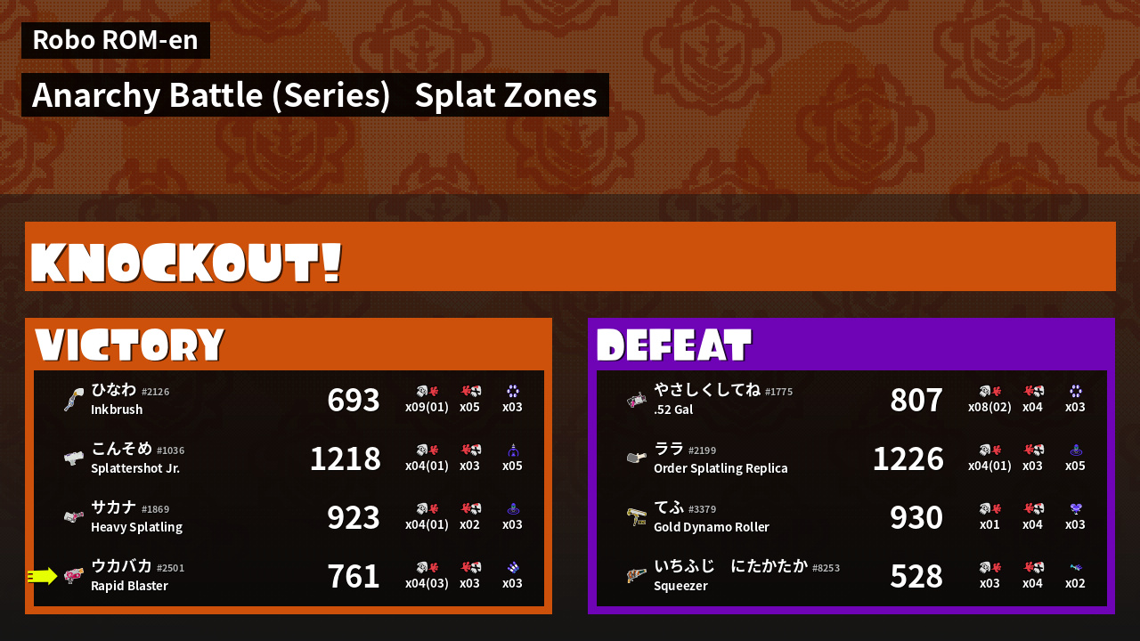 | Medals | #1 Splat Assister #2 Overall Splatter #2 Splat Zone Guard | ||