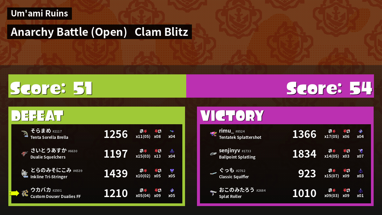 Results of 大乌's Battle