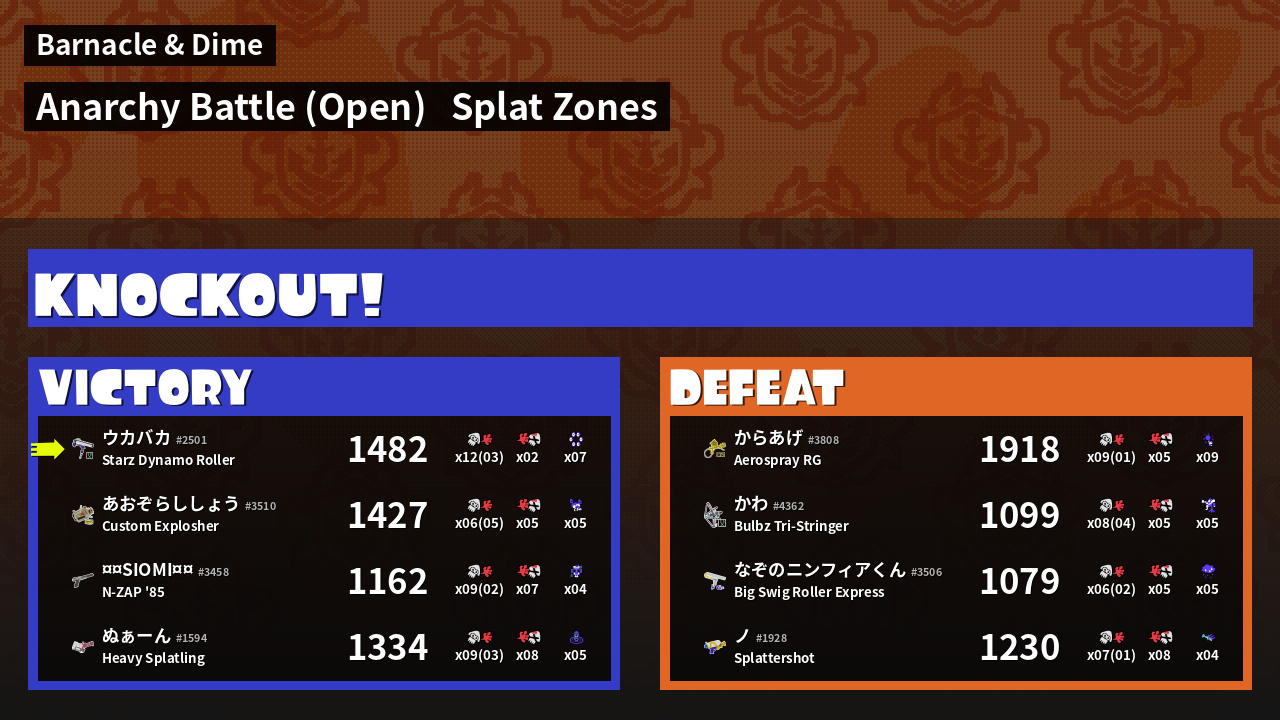 | Mode | Splat Zones - Anarchy Battle (Open) | ||