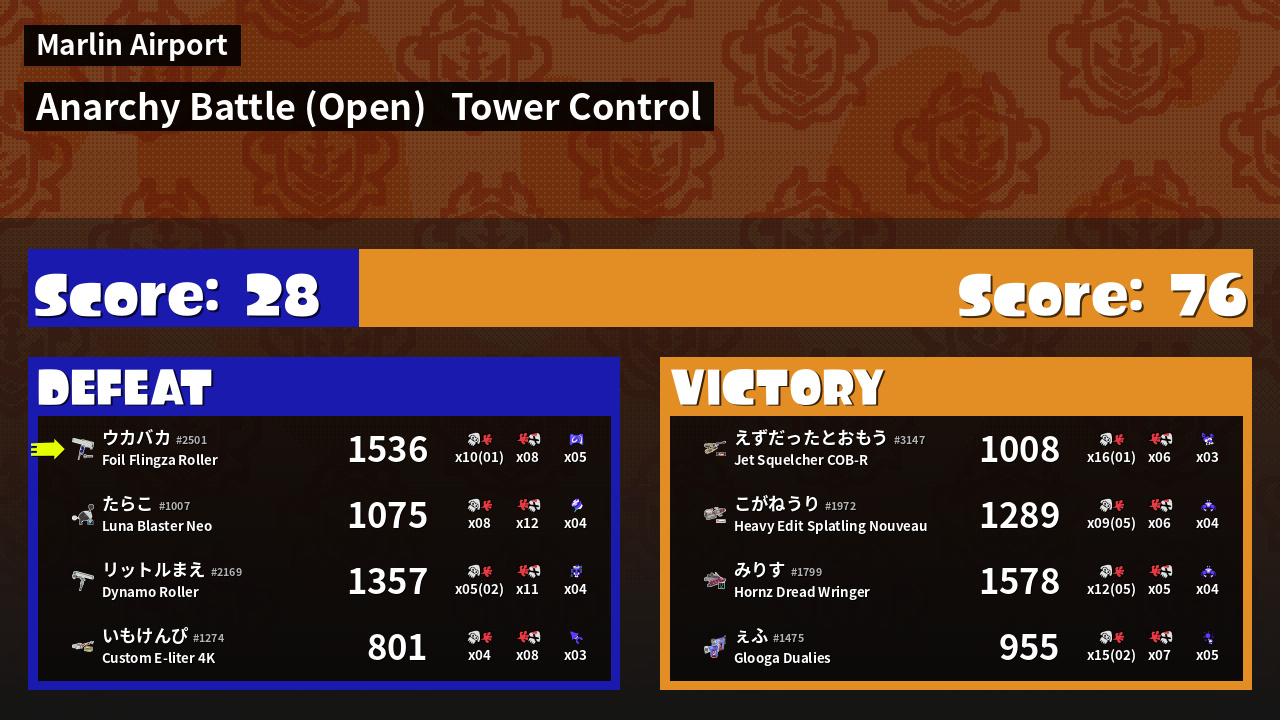 Results of 大乌's Battle