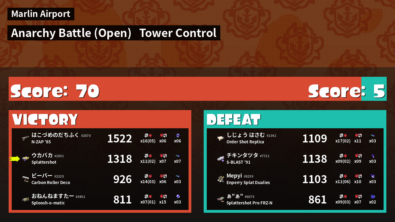 Results of 大乌's Battle