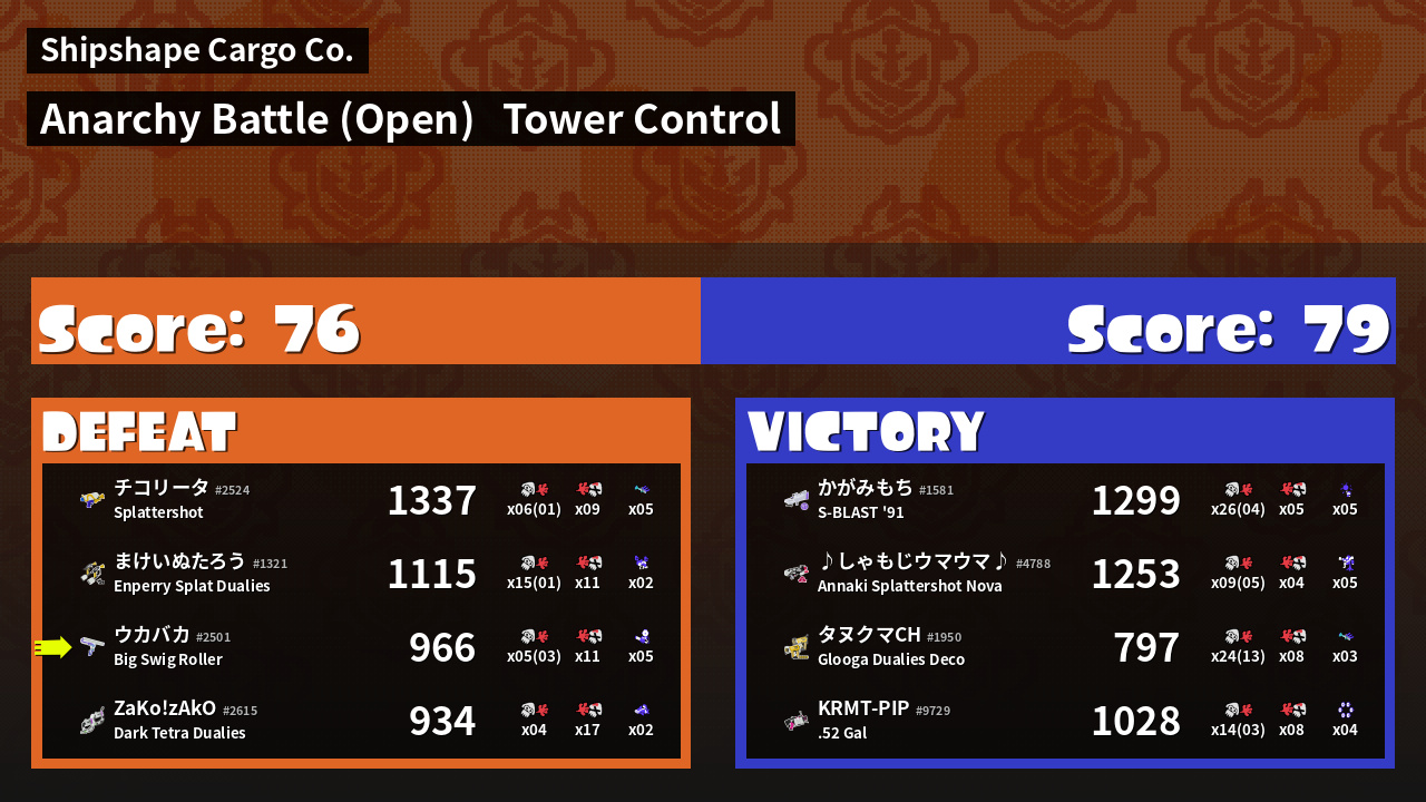 | Mode | Tower Control - Anarchy Battle (Open) | ||
