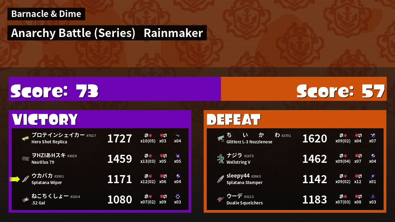Kills / Deaths | 10 + 2 / 6 > Kill Ratio: 1.67 | ||