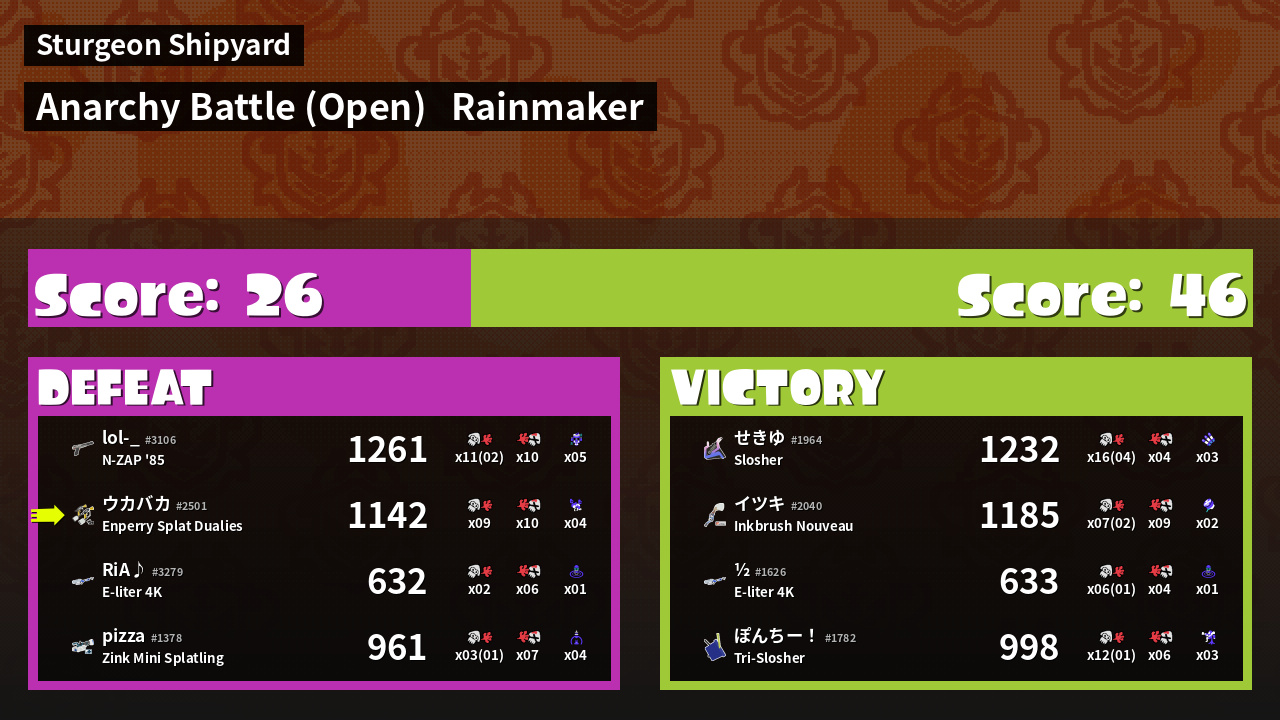 Name | Weapon | Inked | ![]() |