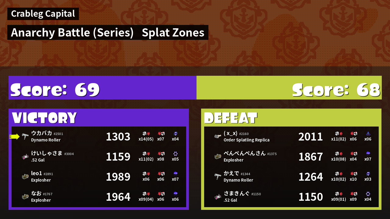 | Mode | Splat Zones - Anarchy Battle (Series) | ||