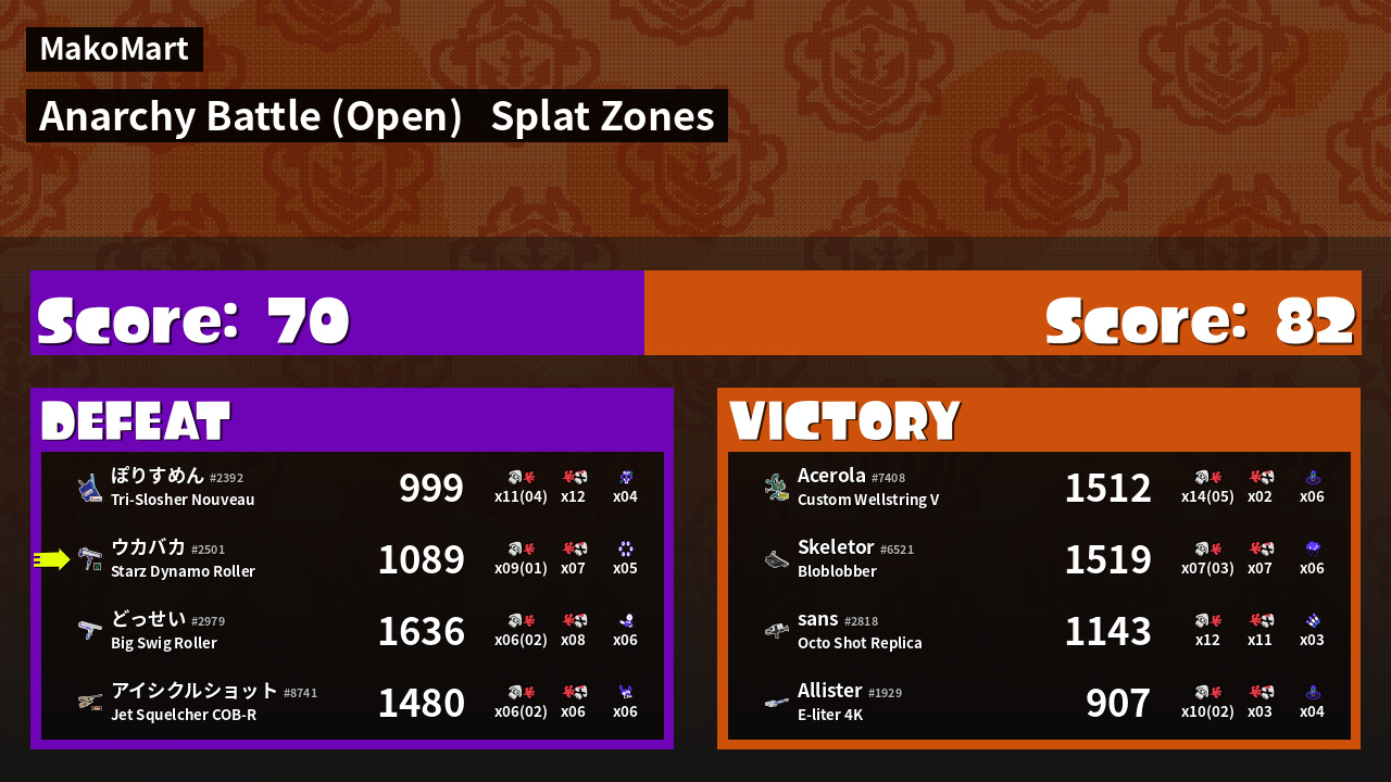 | Mode | Splat Zones - Anarchy Battle (Open) | ||