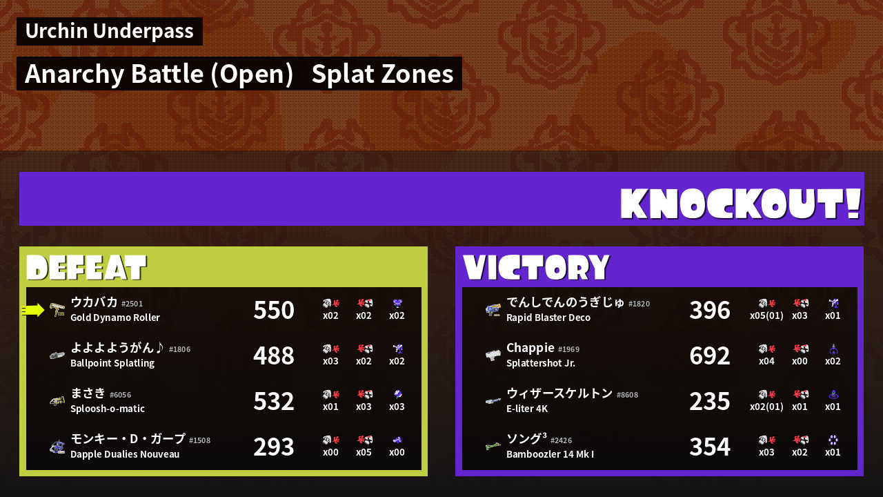 | Mode | Splat Zones - Anarchy Battle (Open) | ||