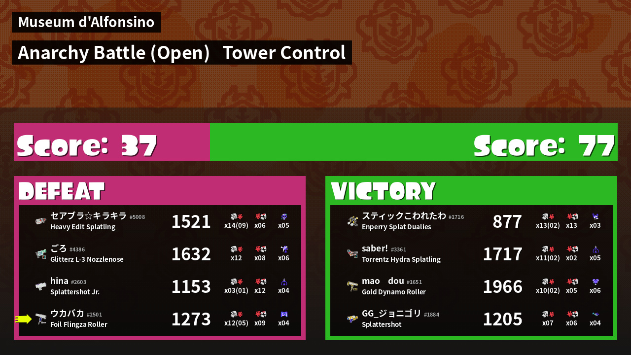 Results of 大乌's Battle