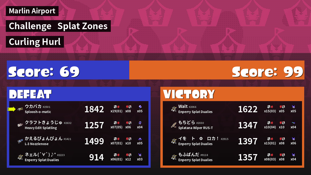 | Medals | #1 Overall Splatter #1 Splat Zone Inker #1 Splat Zone Guard | ||