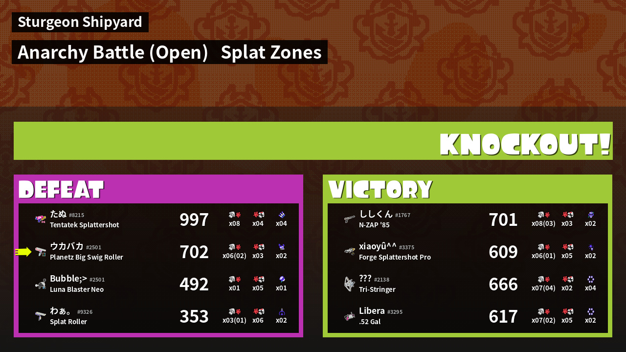 | Mode | Splat Zones - Anarchy Battle (Open) | ||