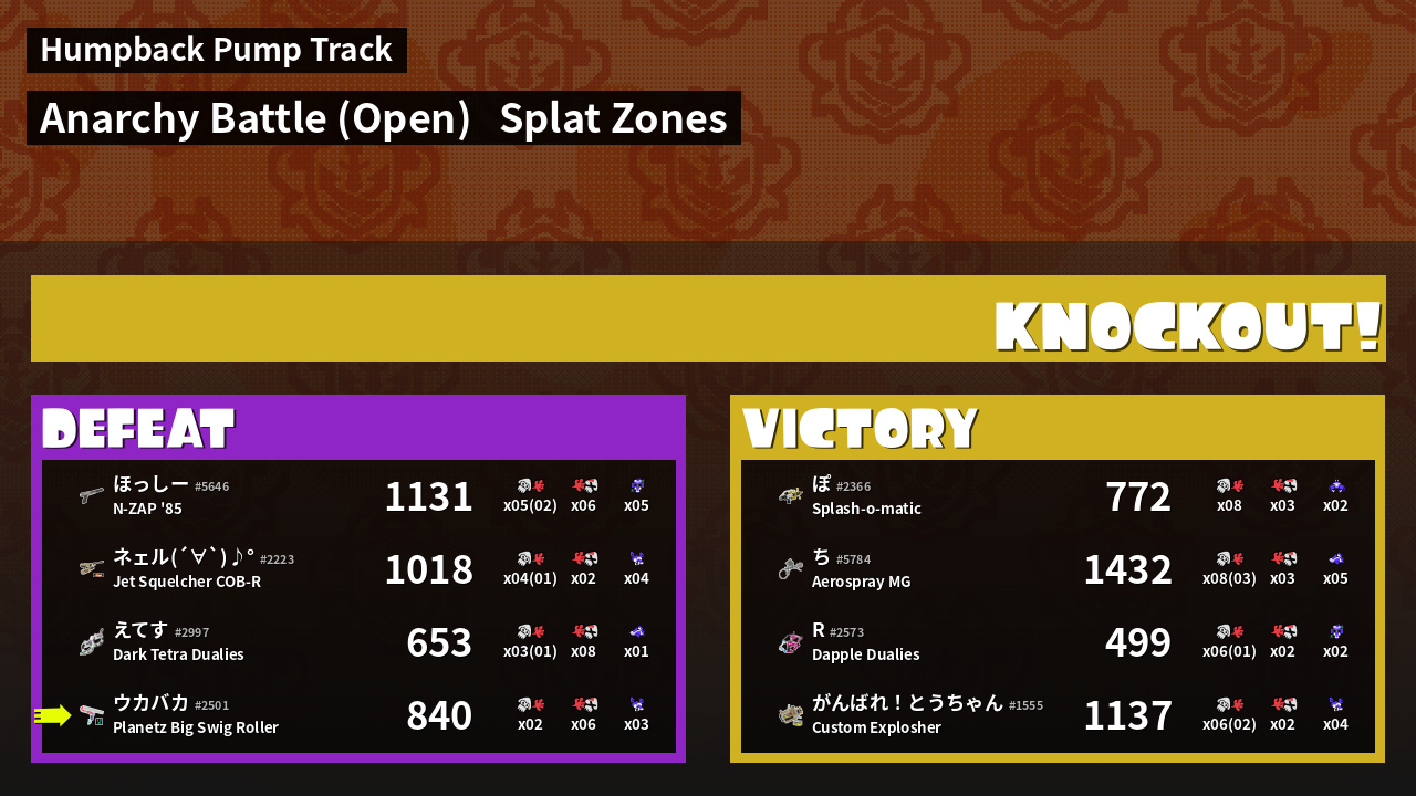 | Mode | Splat Zones - Anarchy Battle (Open) | ||